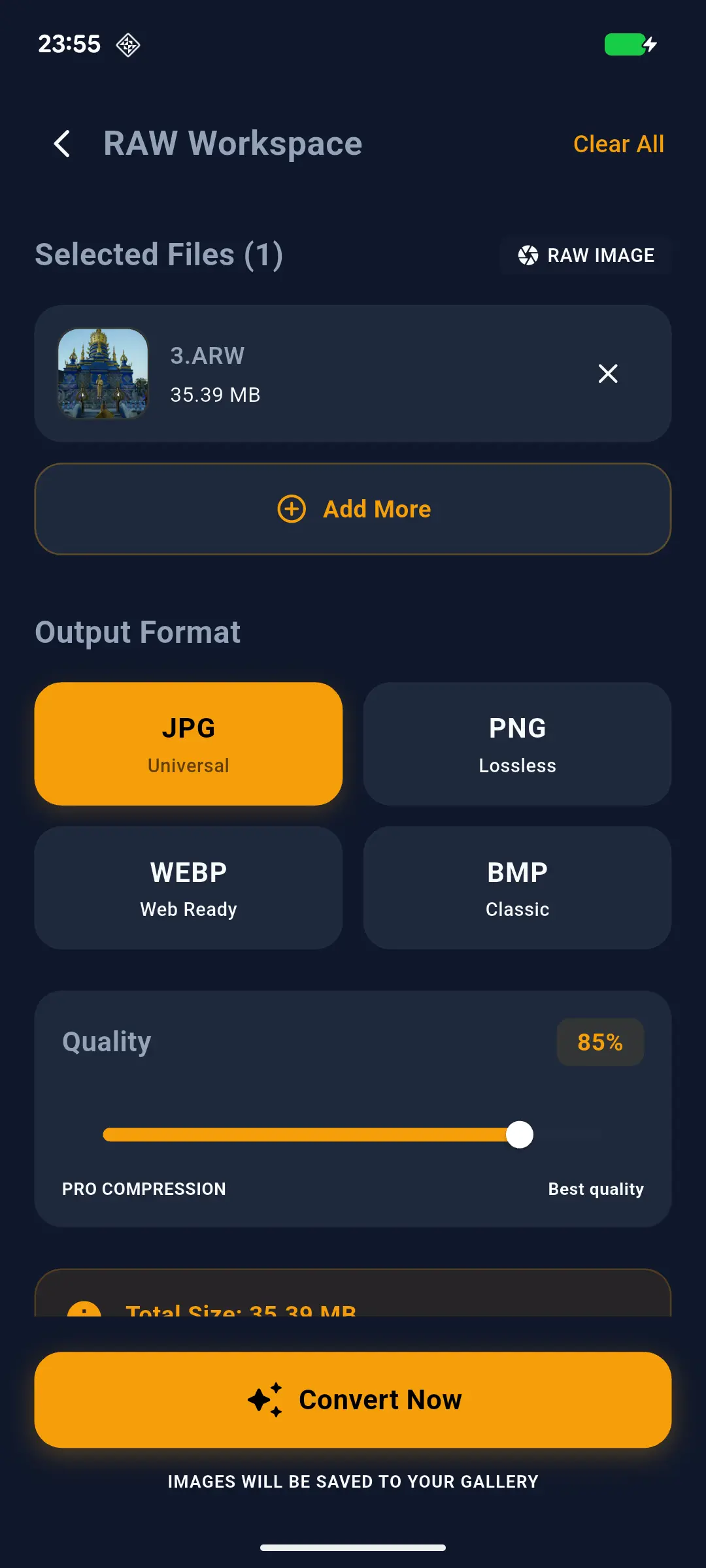 Convert RAW camera files (DNG, ARW, CR2, NEF) to high-quality JPGs on Android instantly. Our professional-grade engine preserves full EXIF metadata and dynamic range for mobile photographers. Fast, offline, and batch-processing enabled.